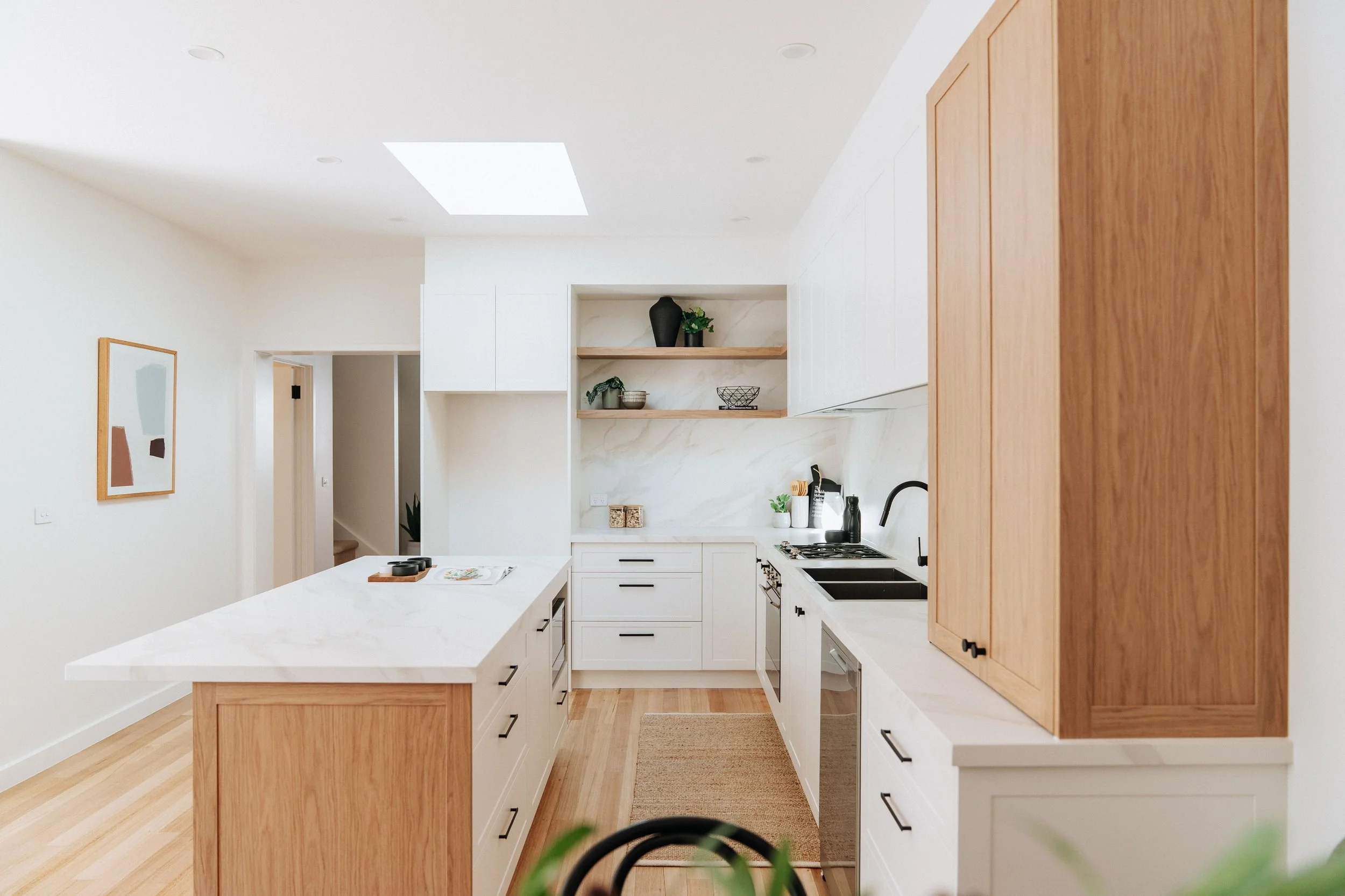 Rothesay Avenue is pure Elwood charm, and Roxanne & Jim wanted their home to feel like it belonged. Soft, neutral, warm and grounded. They had a clear idea of what they were after: a white and oak kitchen, with subtle sophistication.