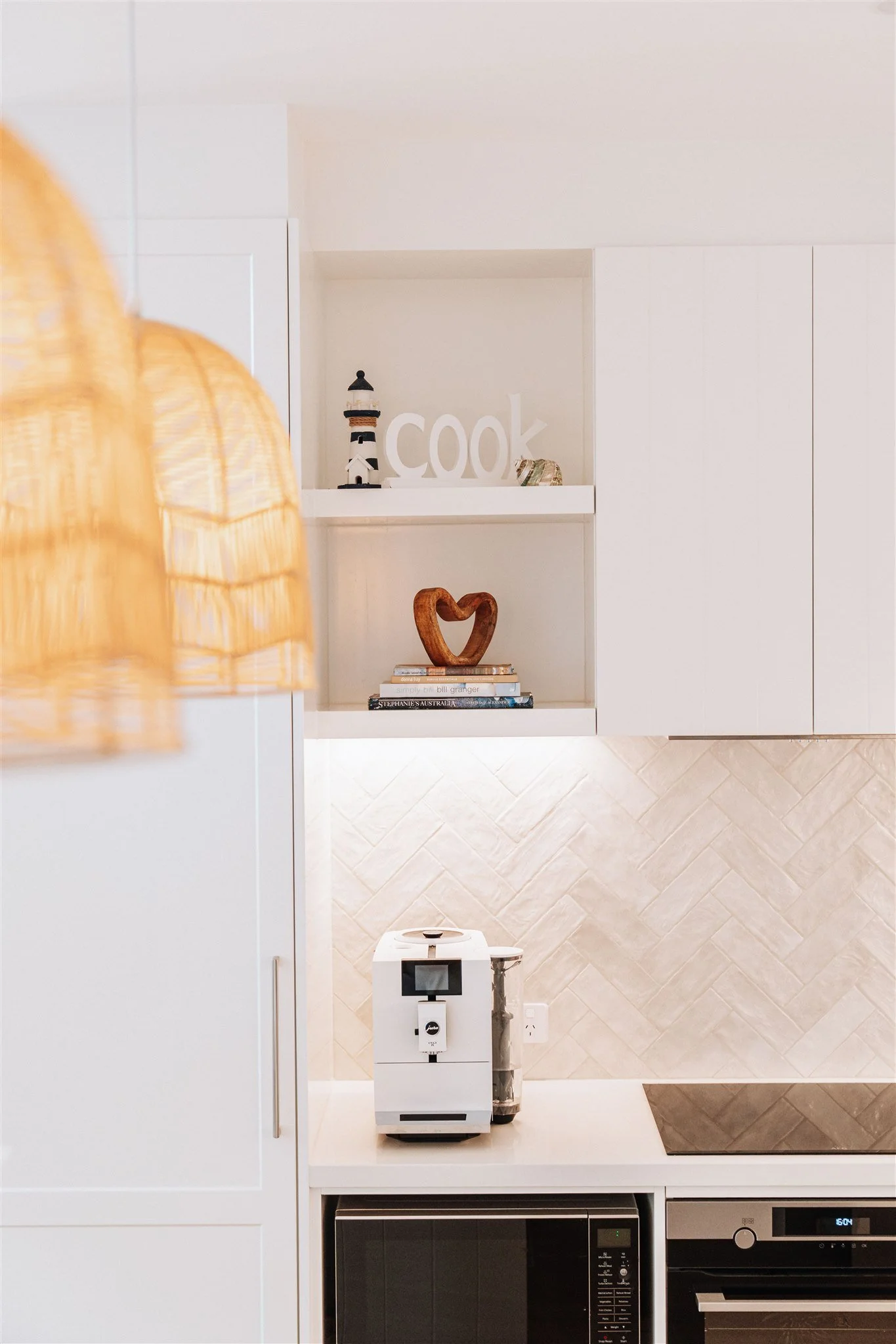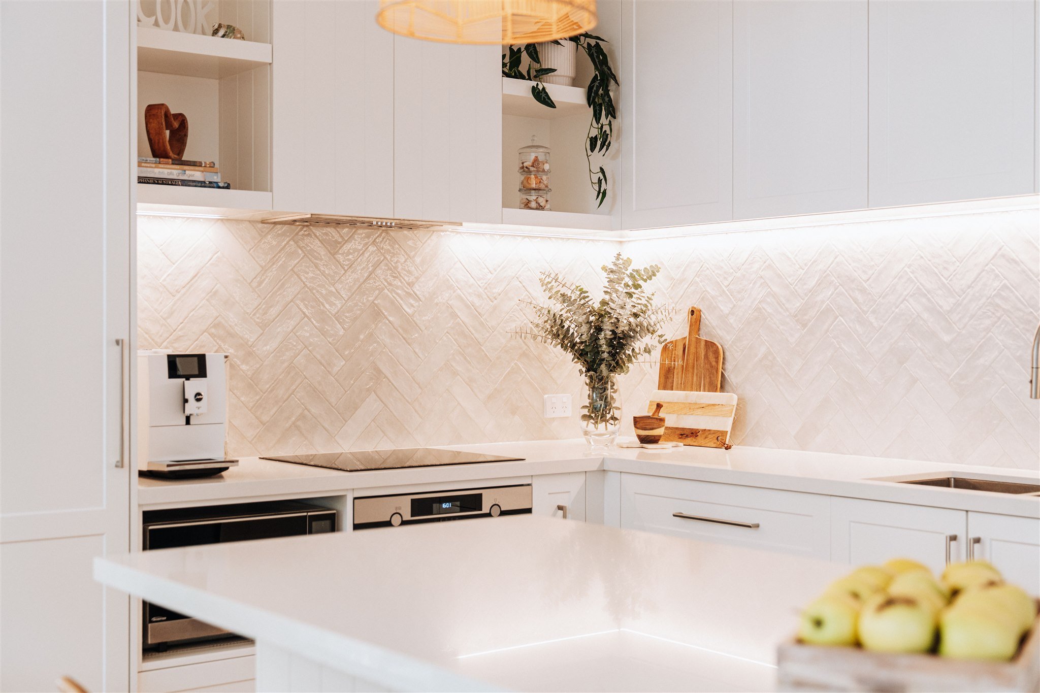 The shift created a benchtop that feels cleaner and more welcoming, and it gave the island a new job - not a functional obstacle, but a central gathering point. It’s now a space that supports everyday flow and feels calm when you walk in the door. Sometimes, it’s not about adding more. It’s about removing the one thing that interrupts the experience of the room. And once the island became that open invitation, the styling could sing.