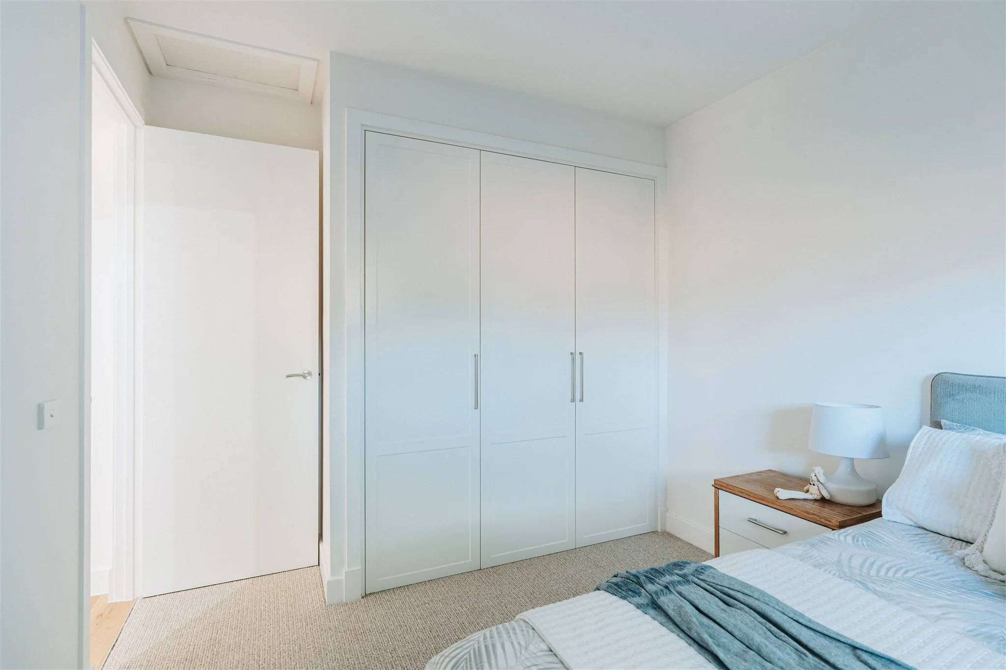 To round out the cabinetry family, 2 pack flat profile in Polytec Classic White was introduced where it best supported the design, keeping the overall look calm and cohesive.